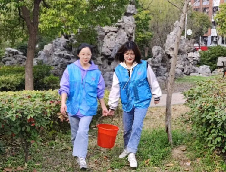 活动现场,在花木种植师傅的专业指导下,志愿者4人一组,齐心协力,破土挖坑,扶苗培土,回填踩踏,提水浇灌。个个热情高涨,干劲十足。青年志愿者们看着一株株新栽种的幼苗迎风挺立,生机盎然,畅想着自己亲手栽种的小树苗多年以后慢慢长大,枝繁叶茂,在校园里散发着清香与艳丽,一种甜甜的喜悦从心头溢出,荡漾在脸上。