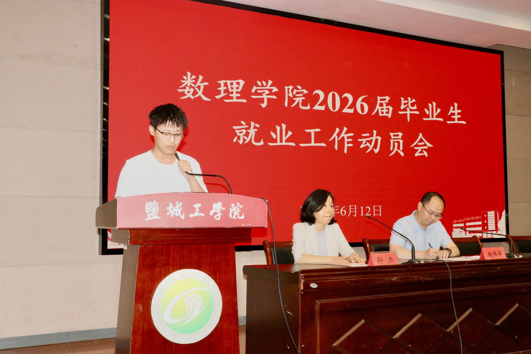 为进一步做好学生就业指导与服务工作,引导2026届毕业生明确职业方向、提升就业能力,6月12日下午,数理学院在机械馆报告厅召开2026届毕业生就业工作动员会。学院党总支书记魏伟华、学术助理左冬冬、学工办主任孙杰出席会议,2025届毕业生代表和2022级全体学生参会,会议由学院团委副书记陈亚雷主持。
