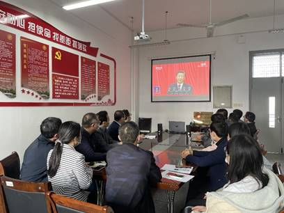 学院党总支理论学习中心组全体成员、党员教师代表收看直播
