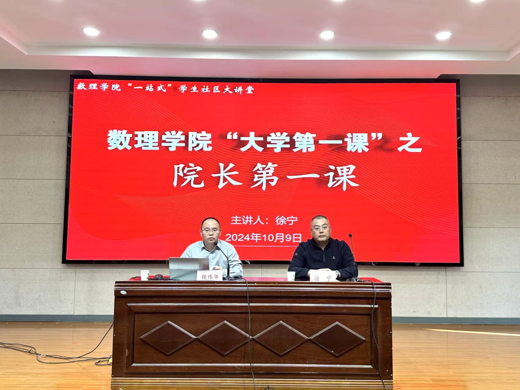 109日下午,数理学院在机械馆报告厅举行“大学第一课” 之院长第一课暨专业教育,院长徐宁以《不负青春,“理”所当然》为题向2024级全体新生讲授“院长第一课”。党总支副书记许众威、副院长田灿荣、各专业系主任、新生辅导员及2024级全体新生参加。活动由学院党总支书记魏伟华主持。
