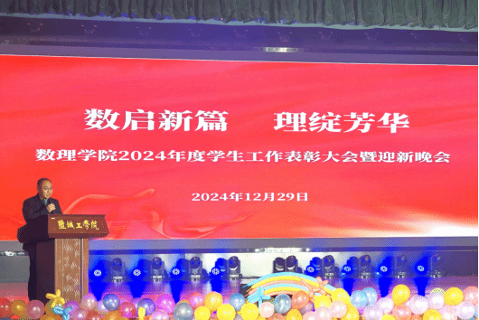为进一步发挥榜样示范引领作用,激励全院青年学生开拓创新、奋勇进取,推进学院优良学风建设,同时营造浓郁校园文化氛围。12月29日晚,数理学院在南校区行政楼报告厅举行2024年度“数启新篇,理绽芳华”学生工作表彰会暨迎新晚会。校党委常委、宣传部部长奚新国,校团委书记杨秀丽,校党委学工部、学生处、招生与就业创业指导处副处长马晓英,2025届毕业生家长代表陈中群作为颁奖嘉宾参加活动。Kaiyun官方网站支书记魏伟华、院长徐宁、党总支副书记许众威、原院长薛长峰、各科室、专业系负责人、教师代表及全体学生参加。