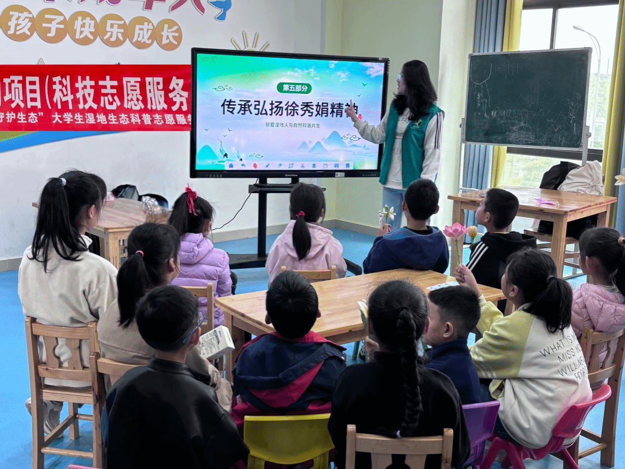 为进一步弘扬、传承徐秀娟烈士精神,加强青少年儿童的环保意识,学生志愿者们还特别向当地儿童讲述了中国第一位环保烈士——徐秀娟的感人事迹,激励孩子们学习其坚守与奉献精神,引导孩子们自觉树立责任与环保意识。
