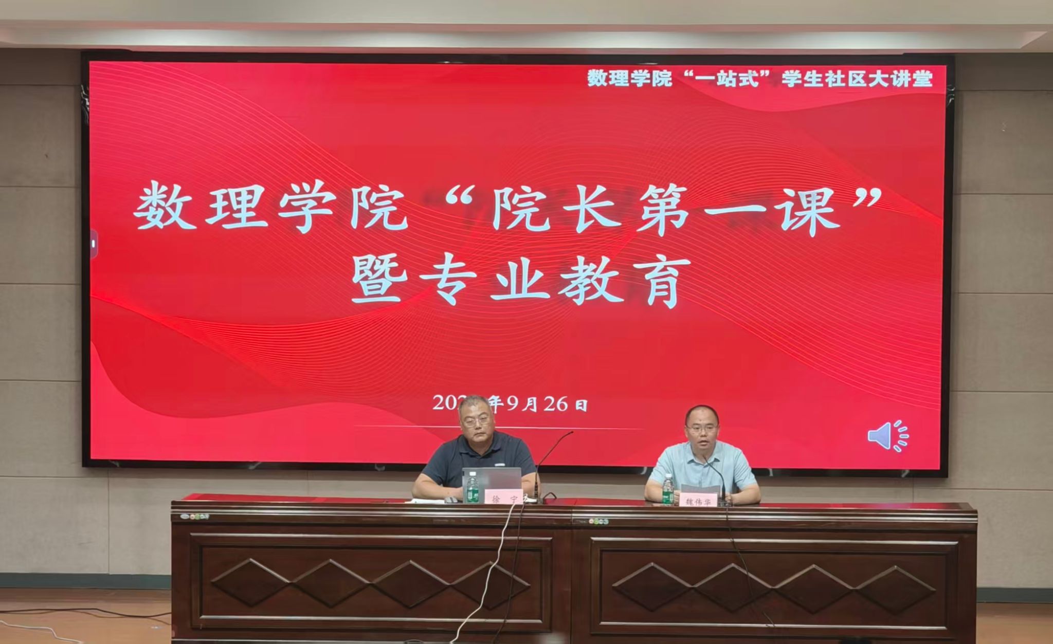 9月26日下午,数理学院在机械馆报告厅举行“大学第一课” 之院长第一课暨专业教育,院长徐宁以《以数理之光,照亮未来之路》为题向2025级全体新生讲授“院长第一课”。党总支副书记许众威、副院长田灿荣、各专业系主任、新生辅导员及2025级全体新生参加。活动由学院党总支书记魏伟华主持。